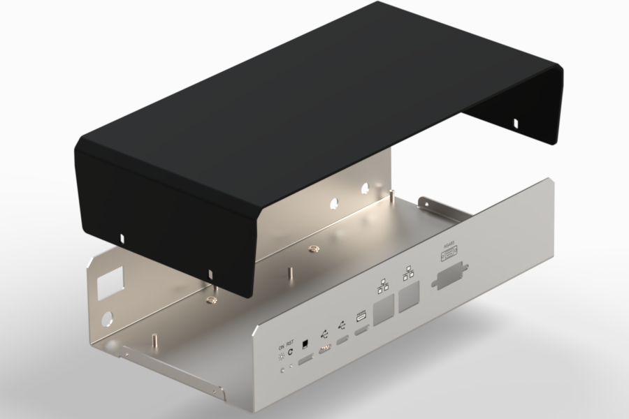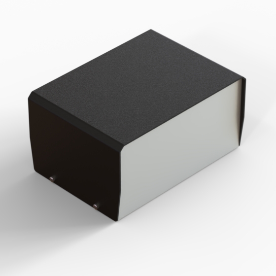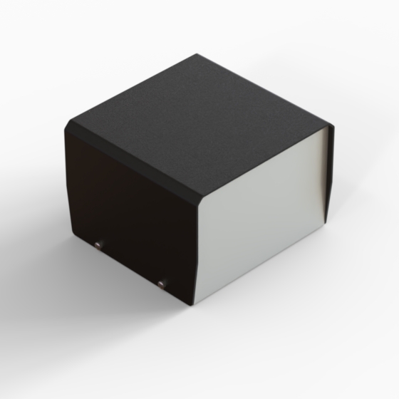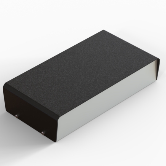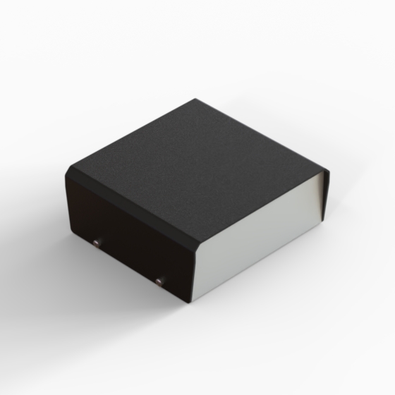 Aluminiumgehäuse mit silberfarbenen Unterteil und schwarzem Deckel. Einfache und schnelle Montage durch vier Schrauben.