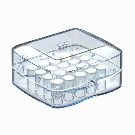 Überzeugend und modern eingerichtet, das „SLS“ –Gehäuse ist aus transparentem Methacrylat produziert. Es enthält zwanzig Runddosen mit Höhe von 25 mm oder von 40 mm und ist ideal zum Lagern und Sortieren von Elektronikbauteilen.