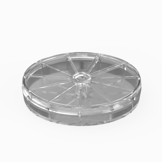 Ergonomisches Aufbewahrungsbox in transparetem Methacrylat, mit 10 Feldern zum Sortieren von kleinen Elektronikbauteilen versehen.