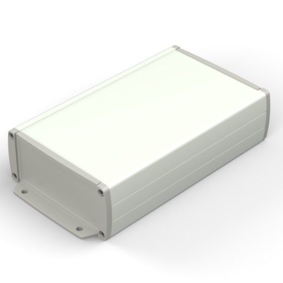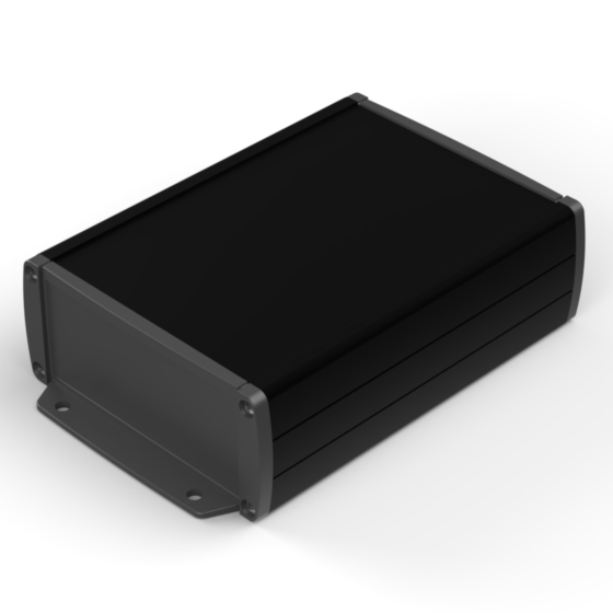 Boîtier en aluminium extrudé avec une haute qualité du finissage extérieur. Deux couvercles en ABS, guides internes pour PCB et partie supérieure avec décrochement pour clavier à membrane. Six modèles à disposition avec dimensions différentes. Les modèles référencés «-E» ont des panneaux pour la fixation murale. Montage par huit vis.