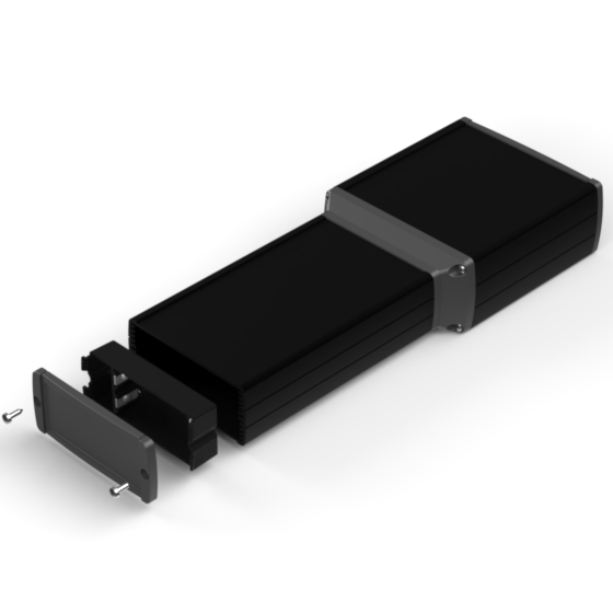 Boîtiers en aluminium extrudé avec une haute qualité du finissage extérieur, spécialement conçu pour utilisation comme terminal de commande dans la main. Parfait pour appareillages qui prévoient un clavier à membrane ou display. Guides internes pour circuit imprimé. Les modèles référencés «-B» ont un logement pour deux piles à 1,5V (AA) ou une pile à 9V (PP3). Montage par douze vis.