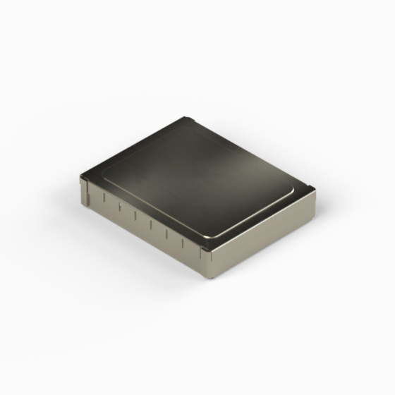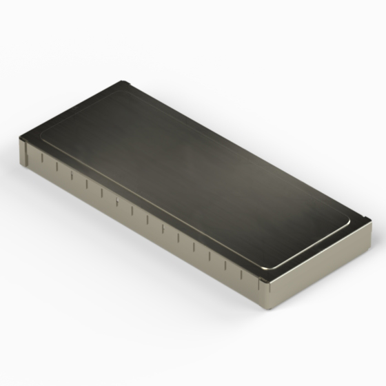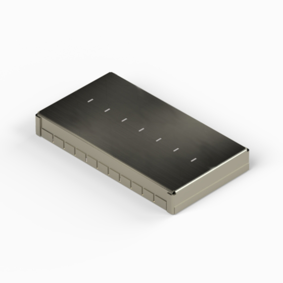 Coffrets en tôle d’acier étamé au bain avec un couvercle fermant par ressort et séparateurs verticaux. Ces séparateurs sont munis de trou et d’une ouverture pour le passages des câbles. La forme de ces coffrets permet un montage facile de circuits imprimés professionnels.