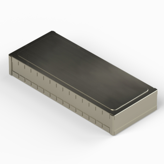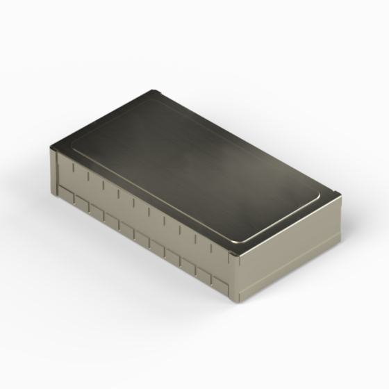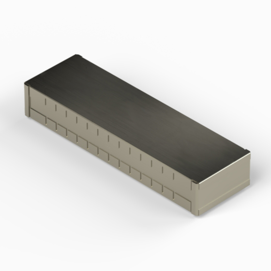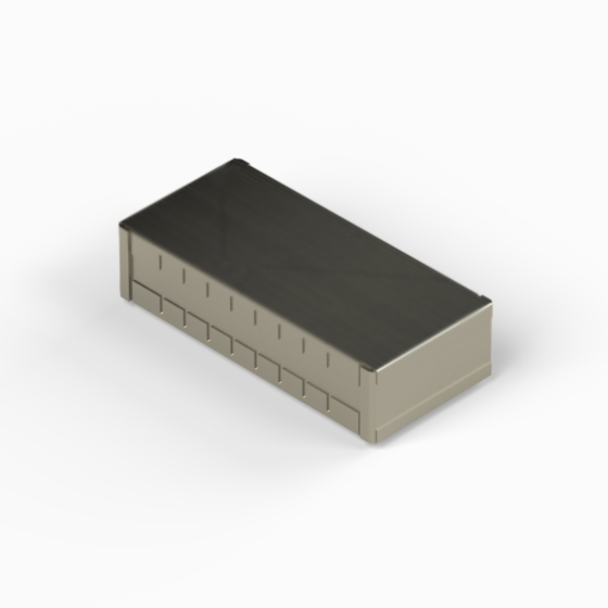 Coffrets en tôle d’acier étamé au bain avec un couvercle fermant par ressort et séparateurs verticaux. Ces séparateurs sont munis de trou et d’une ouverture pour le passages des câbles. La forme de ces coffrets permet un montage facile de circuits imprimés professionnels.